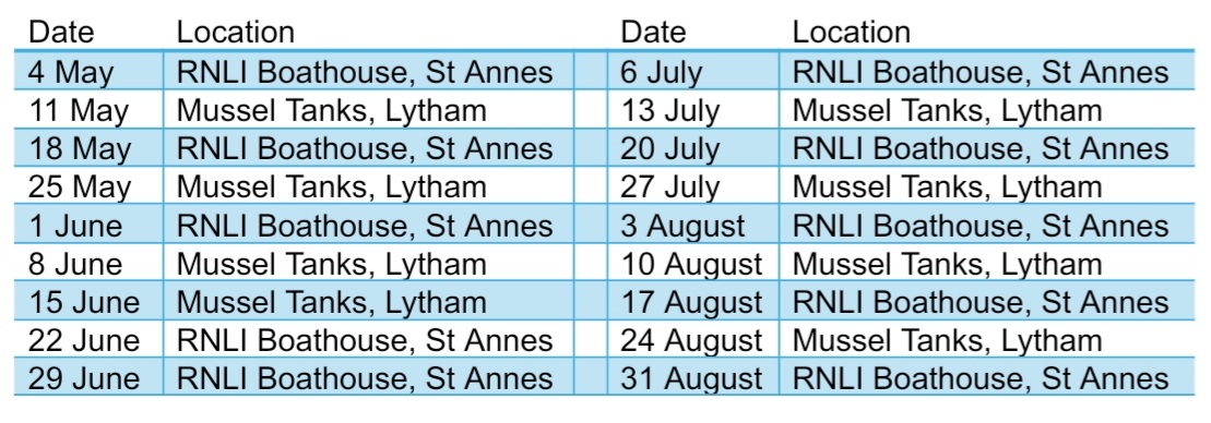 Planned for every Monday throughout summer for live shanties and sea songs, alternating between the St Annes RNLI Boathouse (behind St Annes pool) and the Mussel Tanks (near the RNLI Boathouse in Lytham.